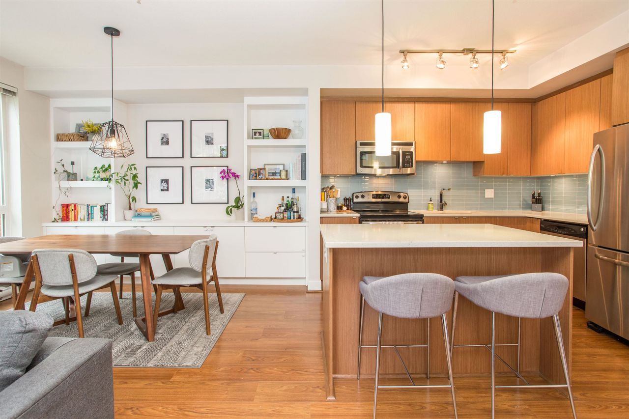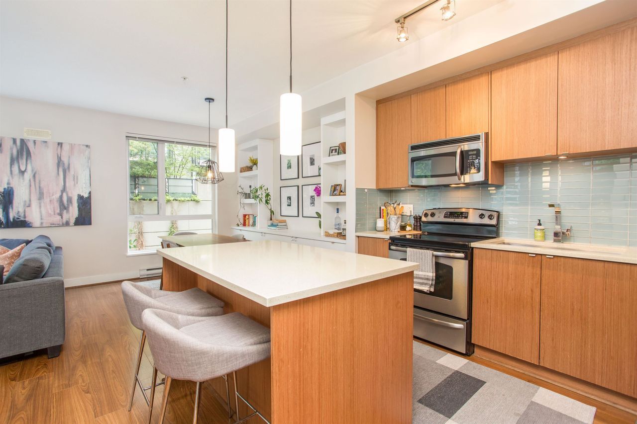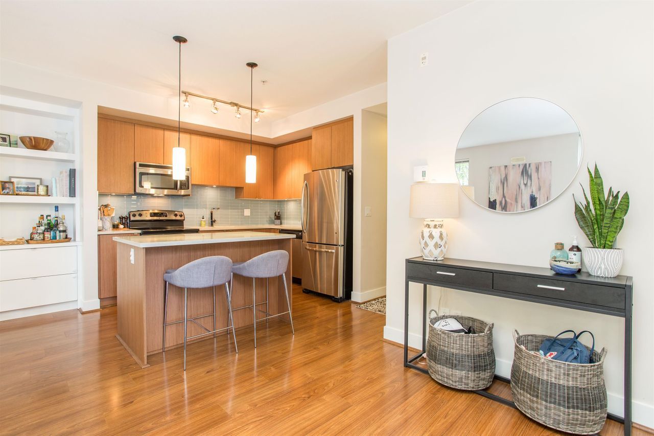 Welcome home to this beautiful one-level 2 bedroom 2 full bathroom townhome in Mosquito Creek. This bright corner unit has over-height ceilings, large windows throughout, newly added built-in cabinetry in the dining room and a gorgeous updated primary bathroom. Enjoy level living, townhome style, with a huge 209 sq ft patio! Steps to the Spirit Trail and Mosquito Creek dog trail, new coffee shops, grocery stores, bus stops, and schools. Adera built with both Leed Platinum and… Built Green Gold Certifications. This is a perfect home for entertaining, children and pets. Enjoy the fully stocked gym, bike room, and the children's play area. One parking, storage locker, rentals and 2 pets allowed! PUBLIC OPEN HOUSE SAT/SUN JULY 9/10th 2-4pm.
