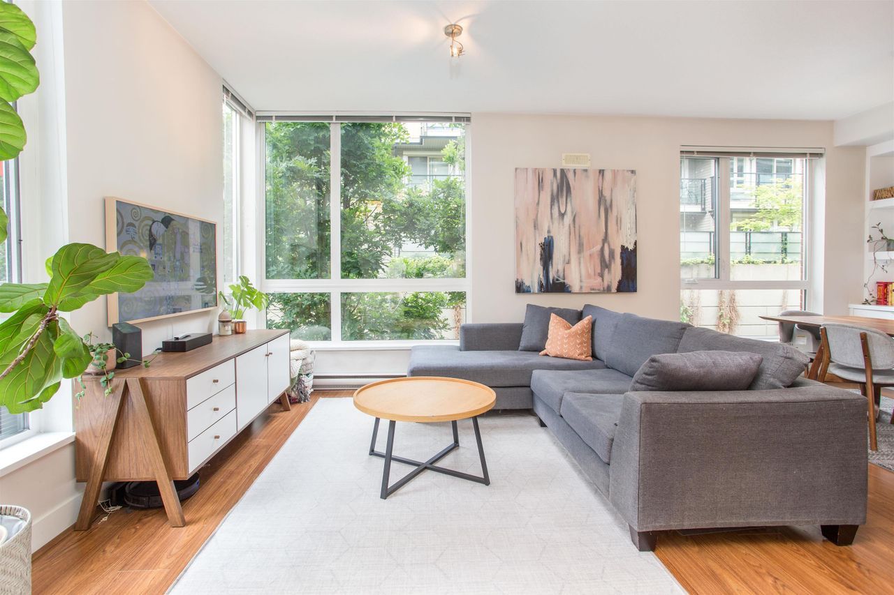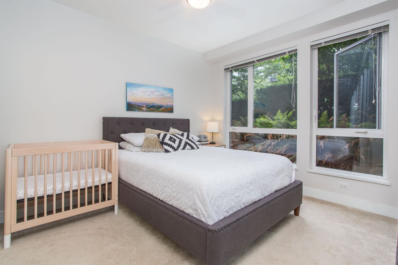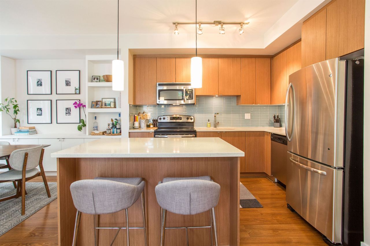 Welcome home to this beautiful one-level 2 bedroom 2 full bathroom townhome in Mosquito Creek. This bright corner unit has over-height ceilings, large windows throughout, newly added built-in cabinetry in the dining room and a gorgeous updated primary bathroom. Enjoy level living, townhome style, with a huge 209 sq ft patio! Steps to the Spirit Trail and Mosquito Creek dog trail, new coffee shops, grocery stores, bus stops, and schools. Adera built with both Leed Platinum and… Built Green Gold Certifications. This is a perfect home for entertaining, children and pets. Enjoy the fully stocked gym, bike room, and the children's play area. One parking, storage locker, rentals and 2 pets allowed! PUBLIC OPEN HOUSE SAT/SUN JULY 9/10th 2-4pm.