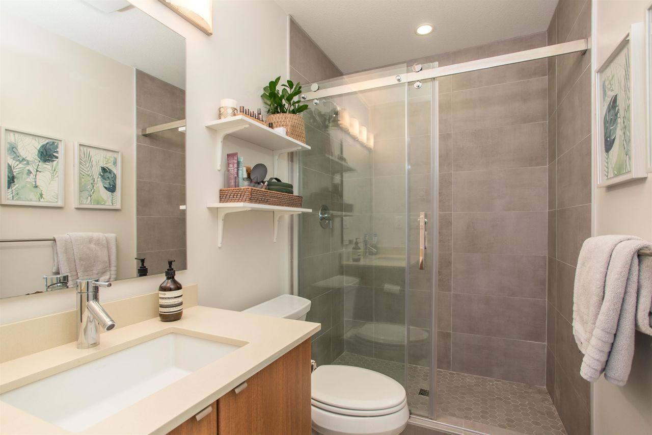 Welcome home to this beautiful one-level 2 bedroom 2 full bathroom townhome in Mosquito Creek. This bright corner unit has over-height ceilings, large windows throughout, newly added built-in cabinetry in the dining room and a gorgeous updated primary bathroom. Enjoy level living, townhome style, with a huge 209 sq ft patio! Steps to the Spirit Trail and Mosquito Creek dog trail, new coffee shops, grocery stores, bus stops, and schools. Adera built with both Leed Platinum and Built Green Gold Certifications. This is a perfect home for entertaining, children and pets. Enjoy the fully stocked gym, bike room, and the children's play area. One parking, storage locker, rentals and 2 pets allowed! PUBLIC OPEN HOUSE SAT/SUN JULY 9/10th 2-4pm.