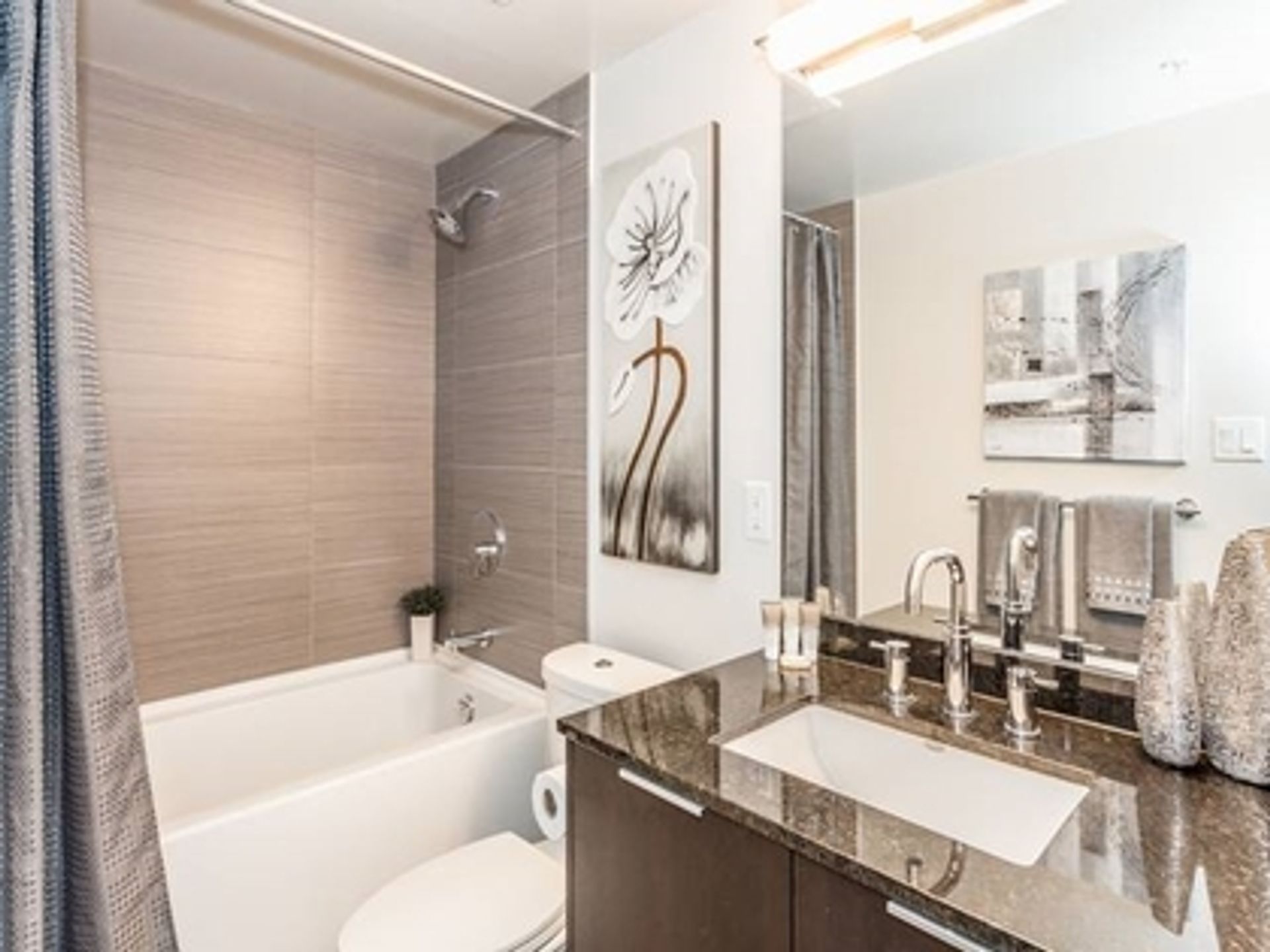 Beautiful views from Every room, Living room, Bedrooms, Balcony. Property has 2 Bedrooms and a Den. One storage locker, one parking stall number 83, Panoramic views open floor plan Den can be office with Beautiful view. Granite counter tops, soft close drawers, laminated flooring in suite laundry. Facility include fitness centre, yoga studio and concierge close to Olympic Village.
