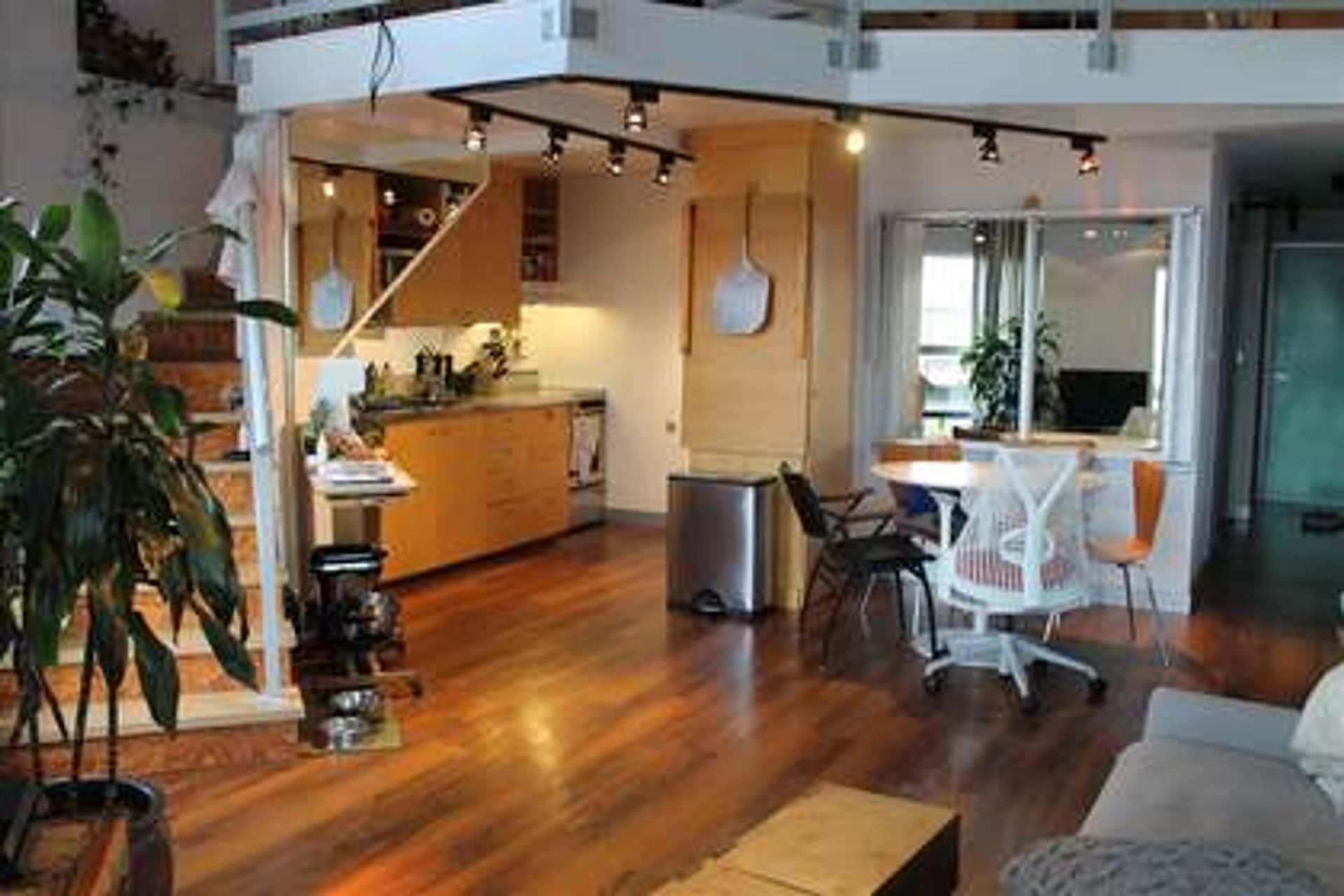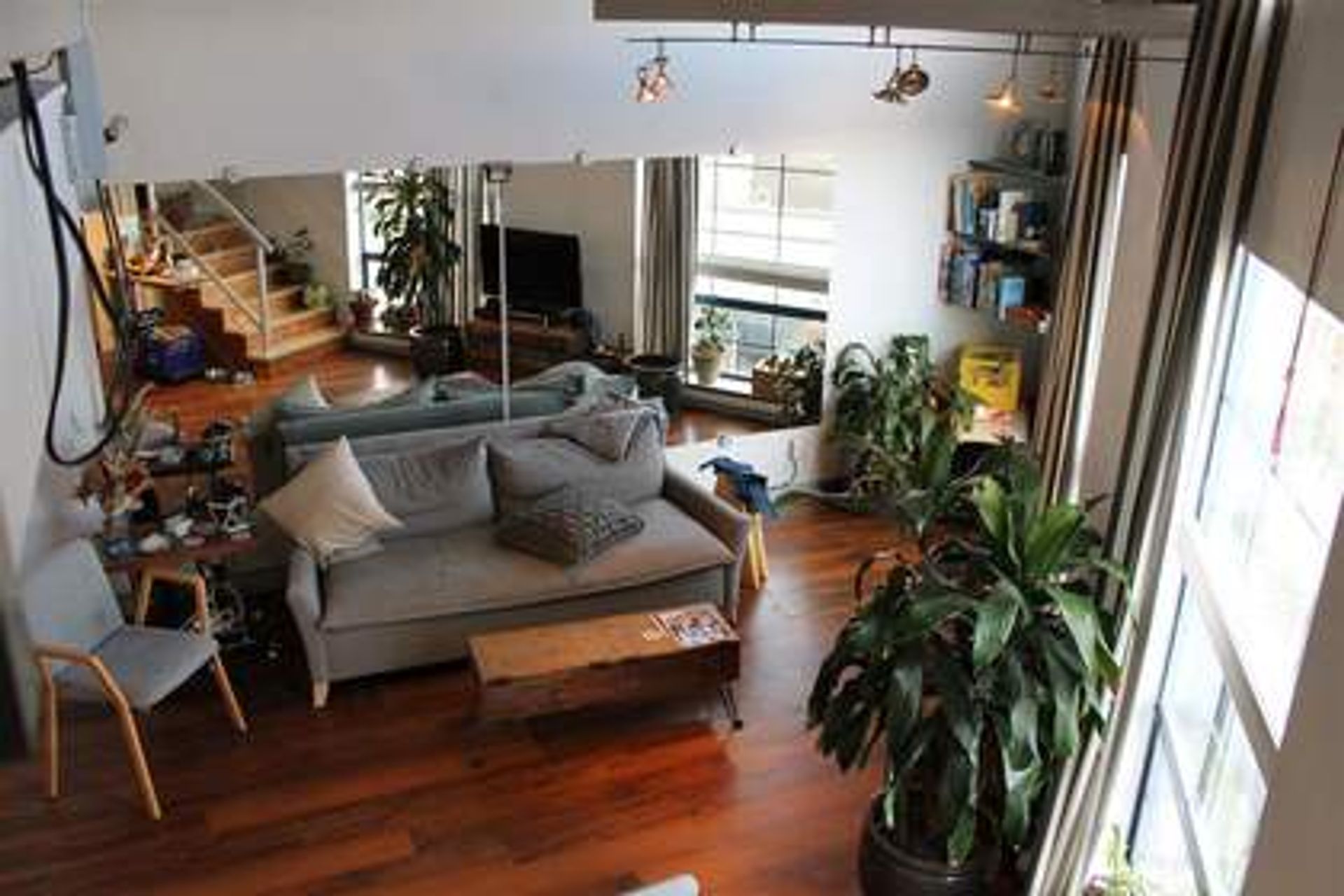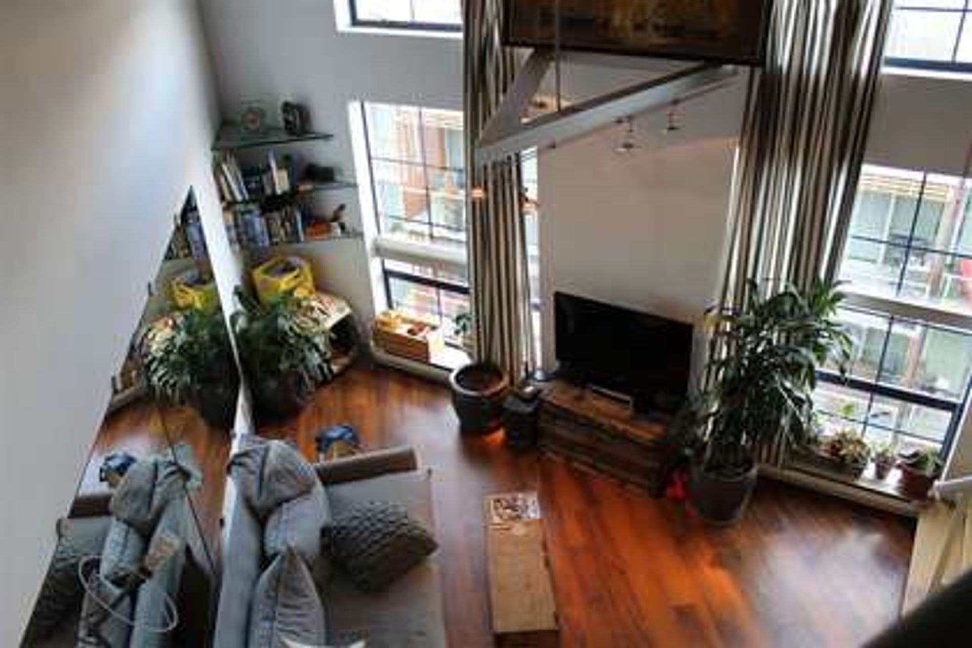 Opportunity to enjoy loft living in a fabulous neighbourhood. Artworks is a solid concrete building located just off Main St. and 3 blocks from the Olympic Village and the community centre. Artworks also offers a Gallery social room with a patio for the owners to use. This top floor loft with 16' ceilings offers views of the northshore mountains and city lights. Large bedroom, office space and tons of storage in the loft. Open concept living room, dining area and kitchen belo…w. 1 parking, secure bike stall and laundry hook ups insuite. Come to the opens with your decorating ideas.