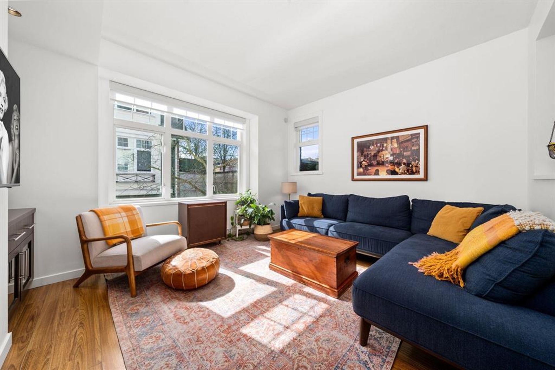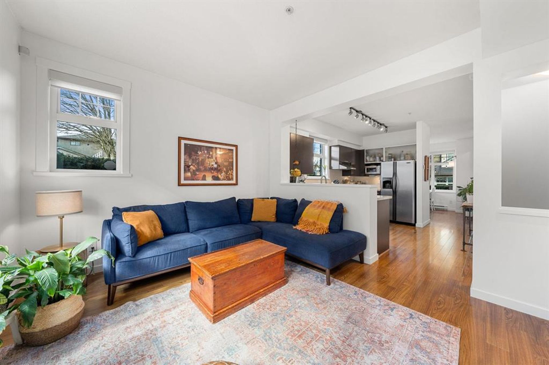 The Stories in Cedar Cottage. 1,376 sq ft, 2 bed+den end-unit townhome witha Walk Score of 93, with cafes, school, and parks just steps away. Inside are 9' ceilings on the main with an open smart layout for cooking and entertaining, or for relaxing with the family. Upstairs are large, sun-soaked bedrooms. Downstairs is an extra hobby room and a huge garage - perfect for storing toys or use as a home gym. Enjoy dining on your new Trex deck while the kids play with the neighbours. A great, safe community full of life!