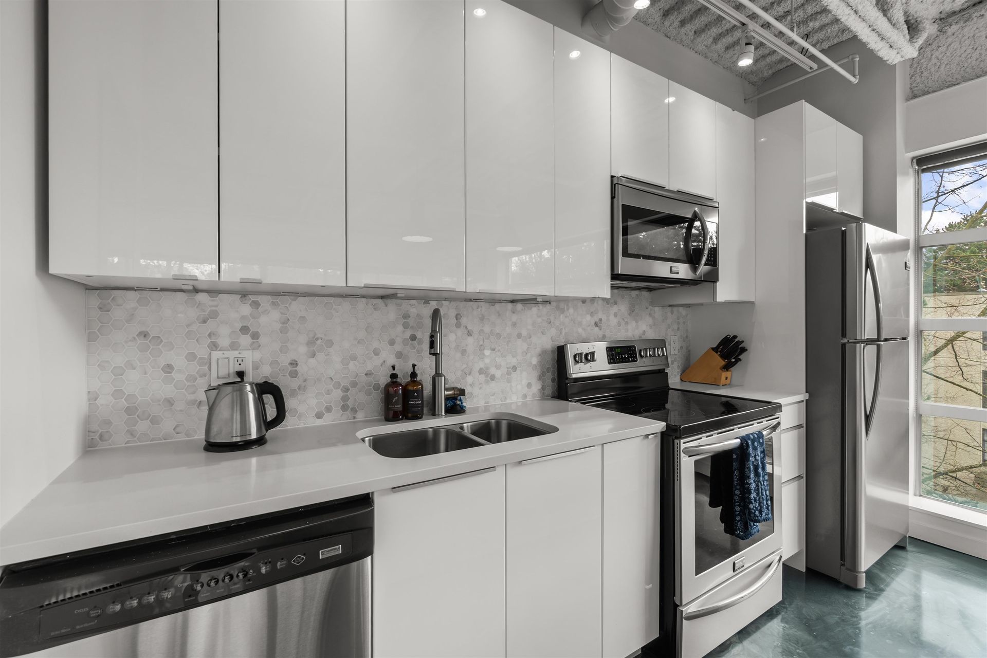 Wow! This is the one... Ultra bright, super spacious, updated massive corner unit with a giant private bedroom. Unit 431 at the Mainspace live/work lofts has it all: in-suite laundry, Southwest exposure (on the quiet side of the building), 1 parking, sprawling layout with renovated kitchen, custom durable epoxy floors, 10 foot high ceilings, storage space, and a green outlook with windows galore! This very unique and desired building also allows AirBnB nightly rentals! Just s…teps to the best cafés, restaurants, and Emily Carr. First showings Saturday Feb 28th, 2-4pm - don't miss this one!