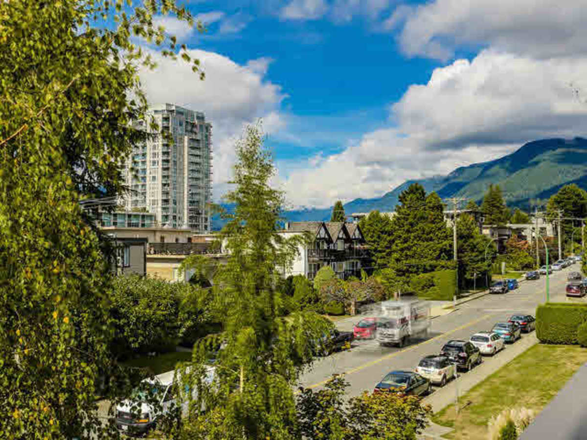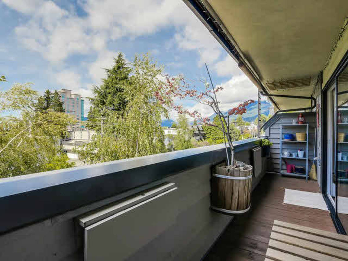 Gorgeous top floor west facing one bedroom condo in the heart of Lonsdale. Views of Grouse Mountain from the covered patio. Vaulted ceilings and skylights provide for abundant natural light throughout the living space. Updated open concept kitchen, renovated bathroom and well cared for laminate hardwood floors highlight this space exceptionally. Modern fixtures in kitchen and bathroom (heated floors). Flow through Jack and Jill closet between ensuite bathroom and master bedro…om. New double pane windows and doors. Walk to everything central Lonsdale has to offer (Loblaws, Starbucks, Browns, Close to transit).Friendly building, self managed proactive strata.