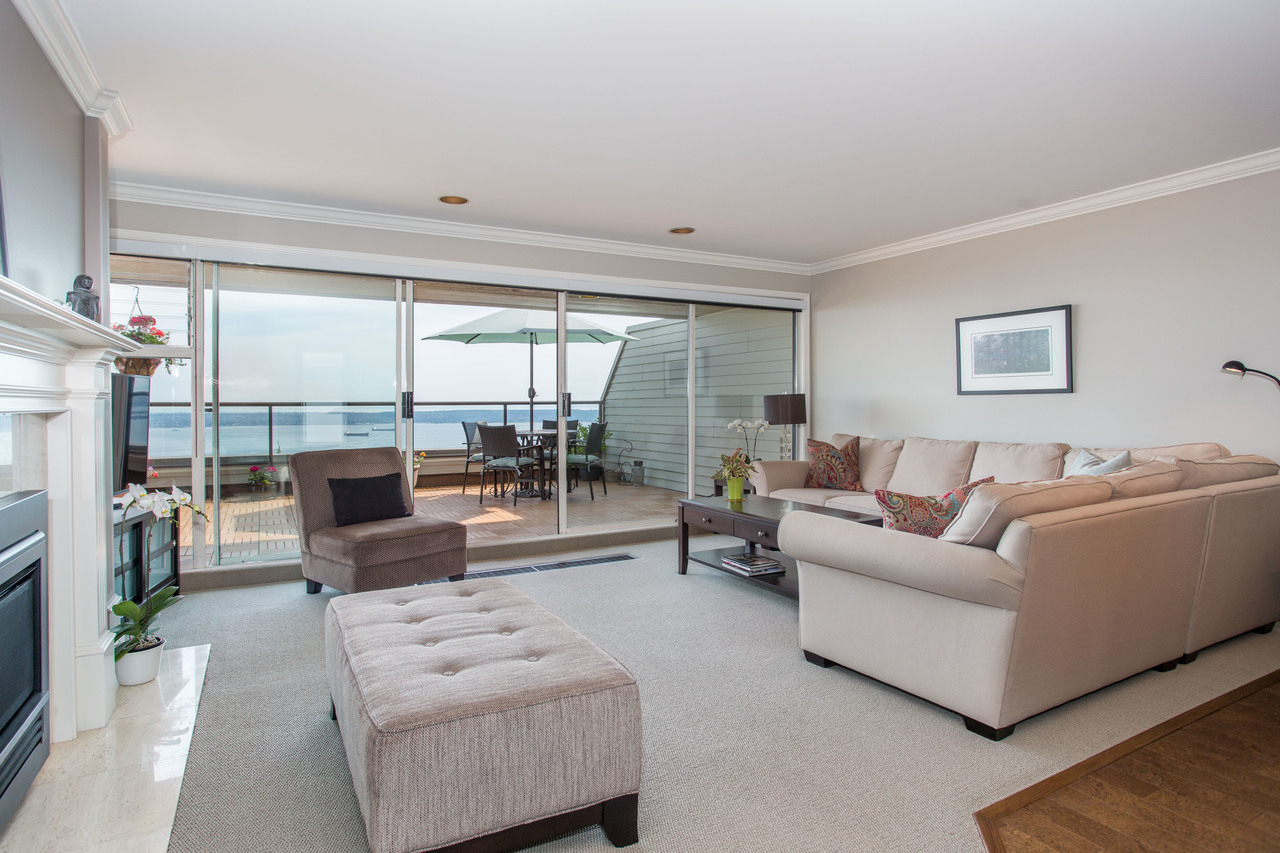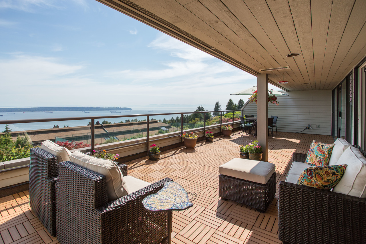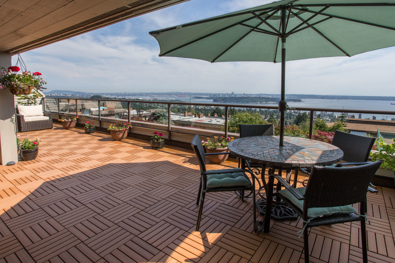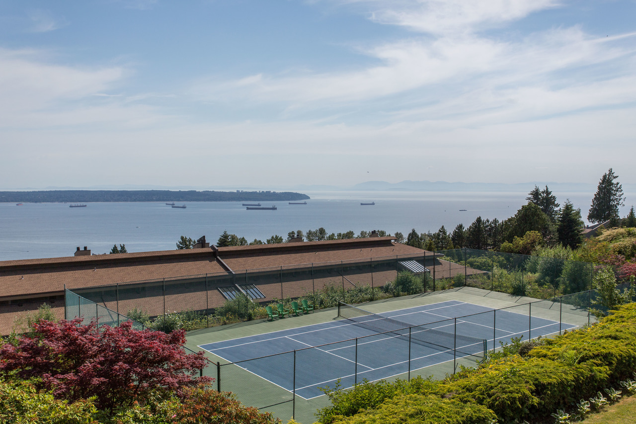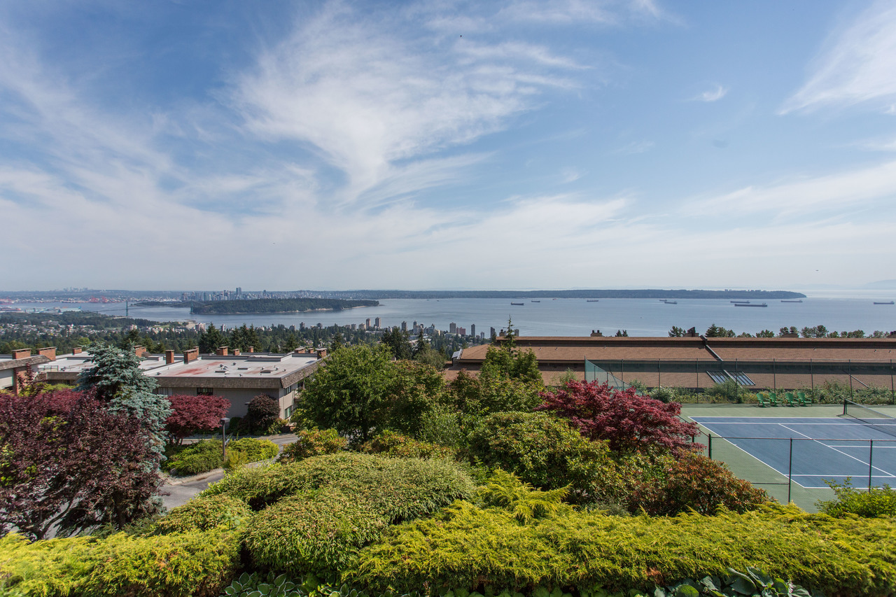 Everything you could ever ask for! Beautifully renovated, 1,420 sq ft, expansive balcony, incredible ocean and city views, totally peaceful & quiet, plus level-entry from your two underground parking spots! This immaculate condo has it all, including an open kitchen with custom shaker cabinetry, granite countertops, & stainless steel appliances. Other updates include beautiful cork plank flooring, refreshed bathrooms, and a cozy gas fireplace. Panorama Gardens is the only complex up on the hill that has a tennis court, indoor pool/hot tub, sauna, gym, recreation room, racquetball court, workshop, and 5 acres of manicured gardens and pathways. South facing for all-day sun and jaw-dropping sunsets. Nothing to do but move in to this gorgeous home! Public Open House Sat, June 30th 2-4pm.