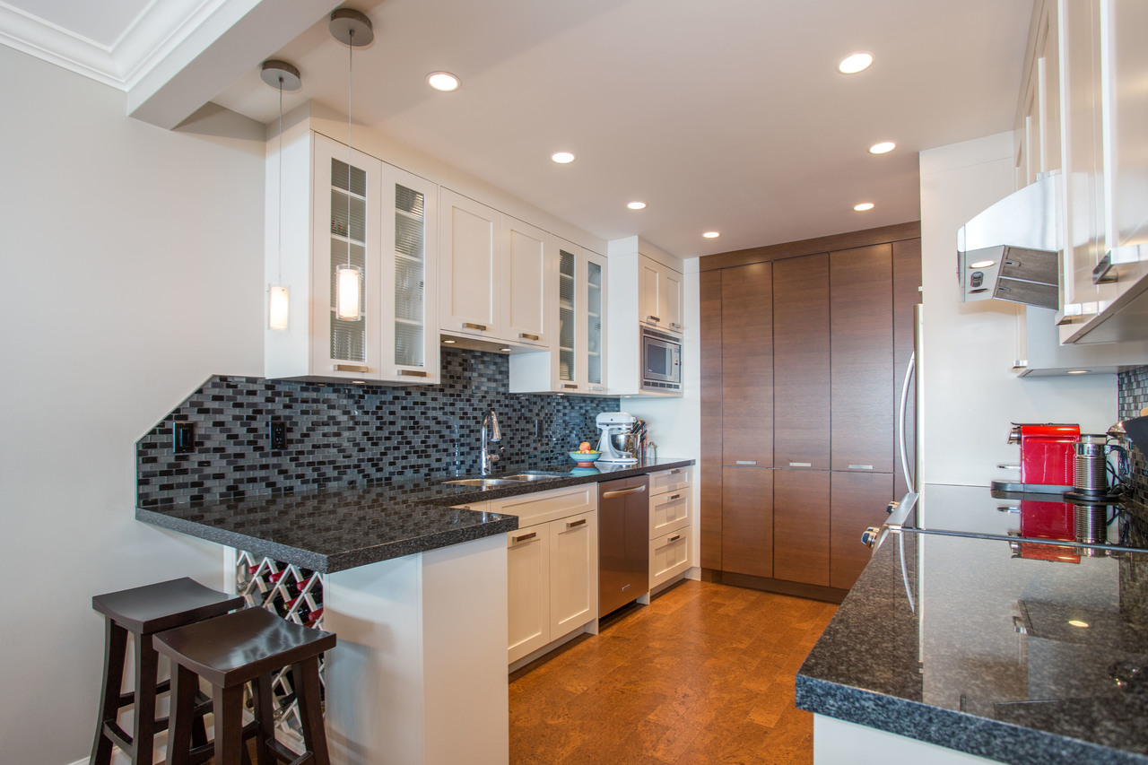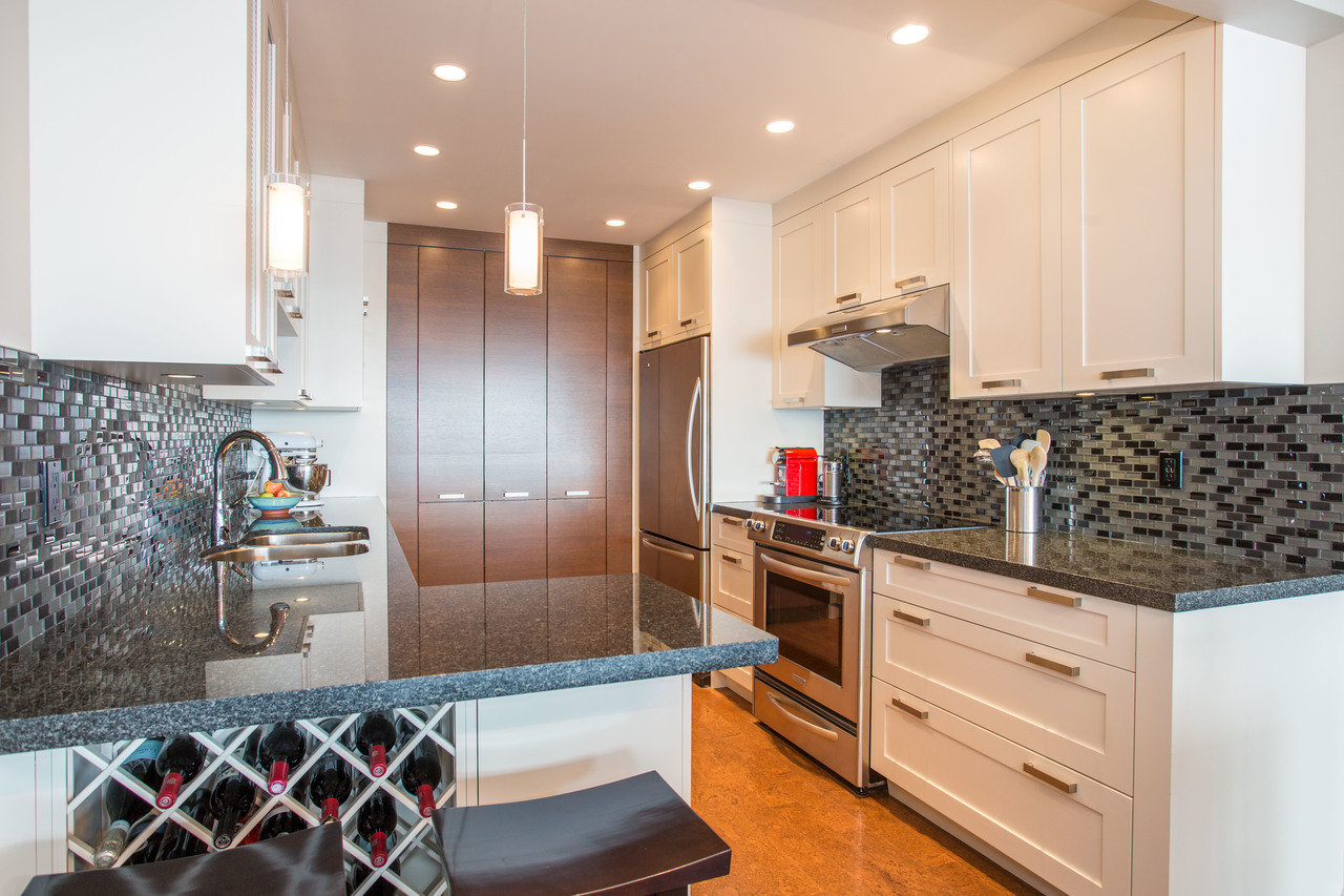 Everything you could ever ask for! Beautifully renovated, 1,420 sq ft, expansive balcony, incredible ocean and city views, totally peaceful & quiet, plus level-entry from your two underground parking spots! This immaculate condo has it all, including an open kitchen with custom shaker cabinetry, granite countertops, & stainless steel appliances. Other updates include beautiful cork plank flooring, refreshed bathrooms, and a cozy gas fireplace. Panorama Gardens is the …only complex up on the hill that has a tennis court, indoor pool/hot tub, sauna, gym, recreation room, racquetball court, workshop, and 5 acres of manicured gardens and pathways. South facing for all-day sun and jaw-dropping sunsets. Nothing to do but move in to this gorgeous home! Public Open House Sat, June 30th 2-4pm.