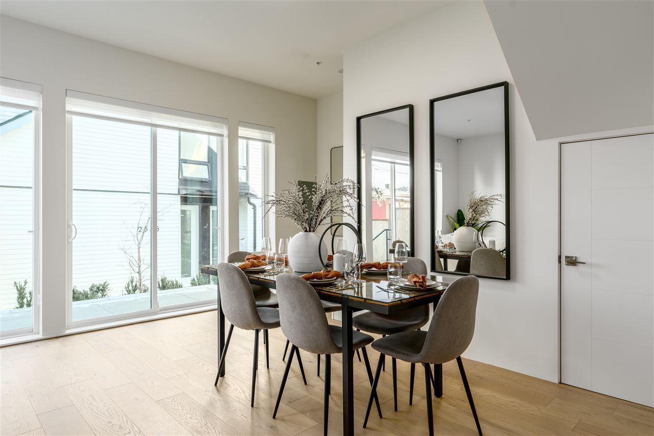 Welcome to East Fortieth, a BRAND NEW collection of six European inspired duplex homes in the heart of East Vancouver's Renfrew-Collingwood. This home has been designed with entertaining and families in mind. The kitchen includes a lineup of Blomberg appliances and quartz countertops. The main living area features an open concept living/dining & a private deck conveniently located off the living room. The second floor features three light filled bedrooms and two spa inspi…red bathrooms. Off the master bedroom suite you will find a large patio to enjoy your morning coffee. East Fortieth comes with H/W floors on the main living area & radiant heated floors throughout. One parking stall is included. Ready to move in now. PRIVATE TOURS by appointment - please contact listing agent