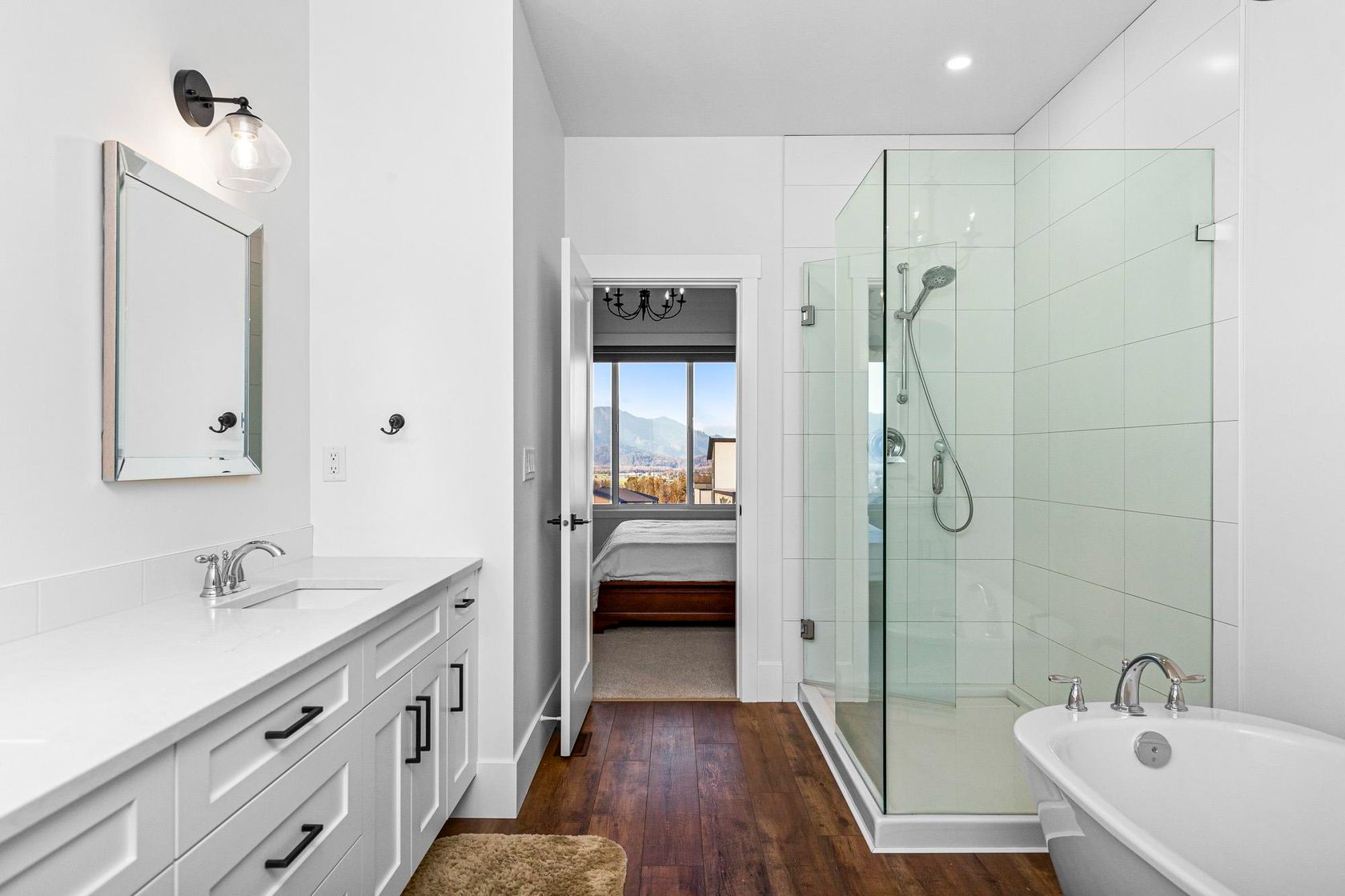 Stunning 4196 square foot high end home. Large master on main with view, giant ensuite, and walk-in closet with windows. Gorgeous kitchen with both an oversized full gas range (including oven and high end overhead fan) as well as an electric wall oven, in addition to all upper end appliances and a walk-in pantry. Three very large bedrooms upstairs with large 2 part bathroom. The construction includes silent floors, insulated concrete forms, air conditioning and beautiful ligh…ting. The 1657 square foot basement is ready for however you want to configure it, with framing in place for a 2 bedroom suite (including laundry) or for gym/rec/bedrooms to be part of the main house. Full walk-out basement with separate entrance. This is a real dream home.